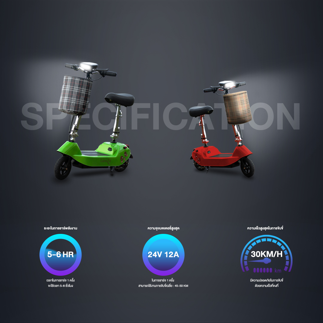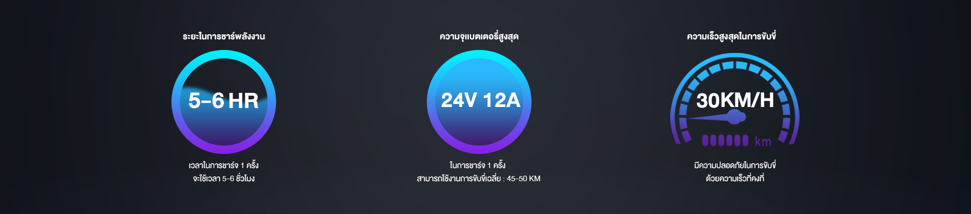- ระยะการขับขี่เฉลี่ย : 45-50 km / การชาร์จ 1 ครั้ง